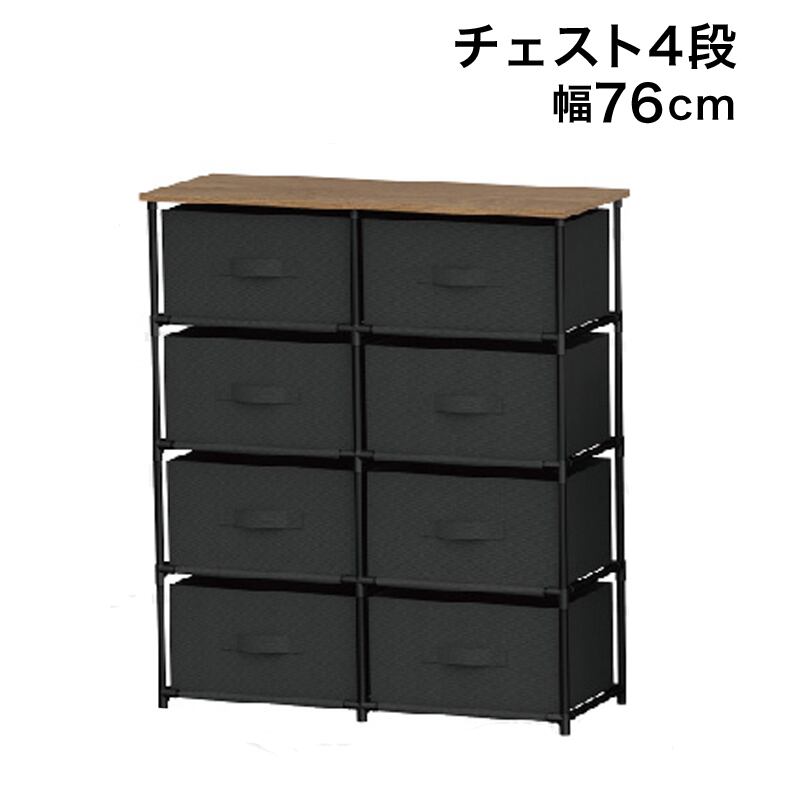 チェスト 幅76cm 奥行30cm 高さ89cm 4段 収納 引き出し 不織布 ラック タンス リビング 大容量 オシャレ コンパクト モダン 天板 ブラック 黒 北欧 ハイタイプ nl-ch-004